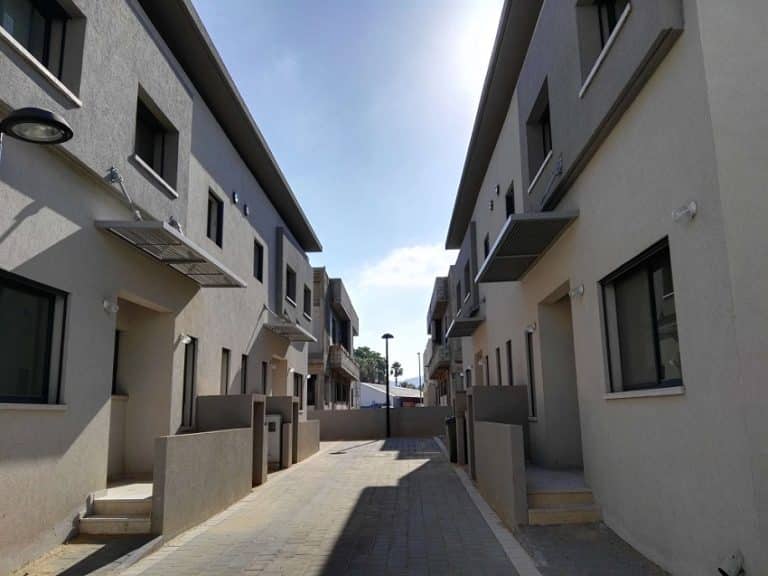 In the developing Afula area, a ground-level apartment complex was built, with the pergolas on the facades of the houses and in the courtyards being high-tech 20/40 models, with both the frame and the filling made of aluminum profiles for durability and a high-quality appearance over the years.
